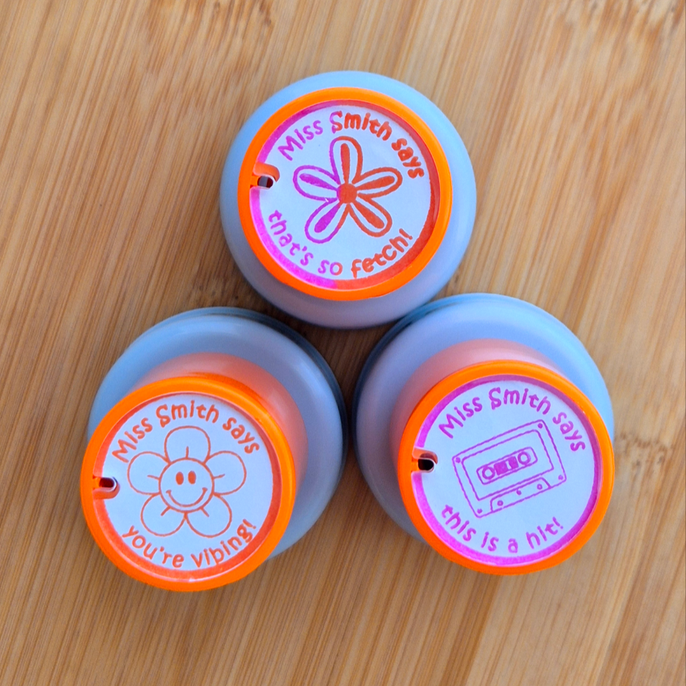 Grab yourself 3 retro stamps perfect for your 2025 classroom ✌️ The default font is what's shown in the images.