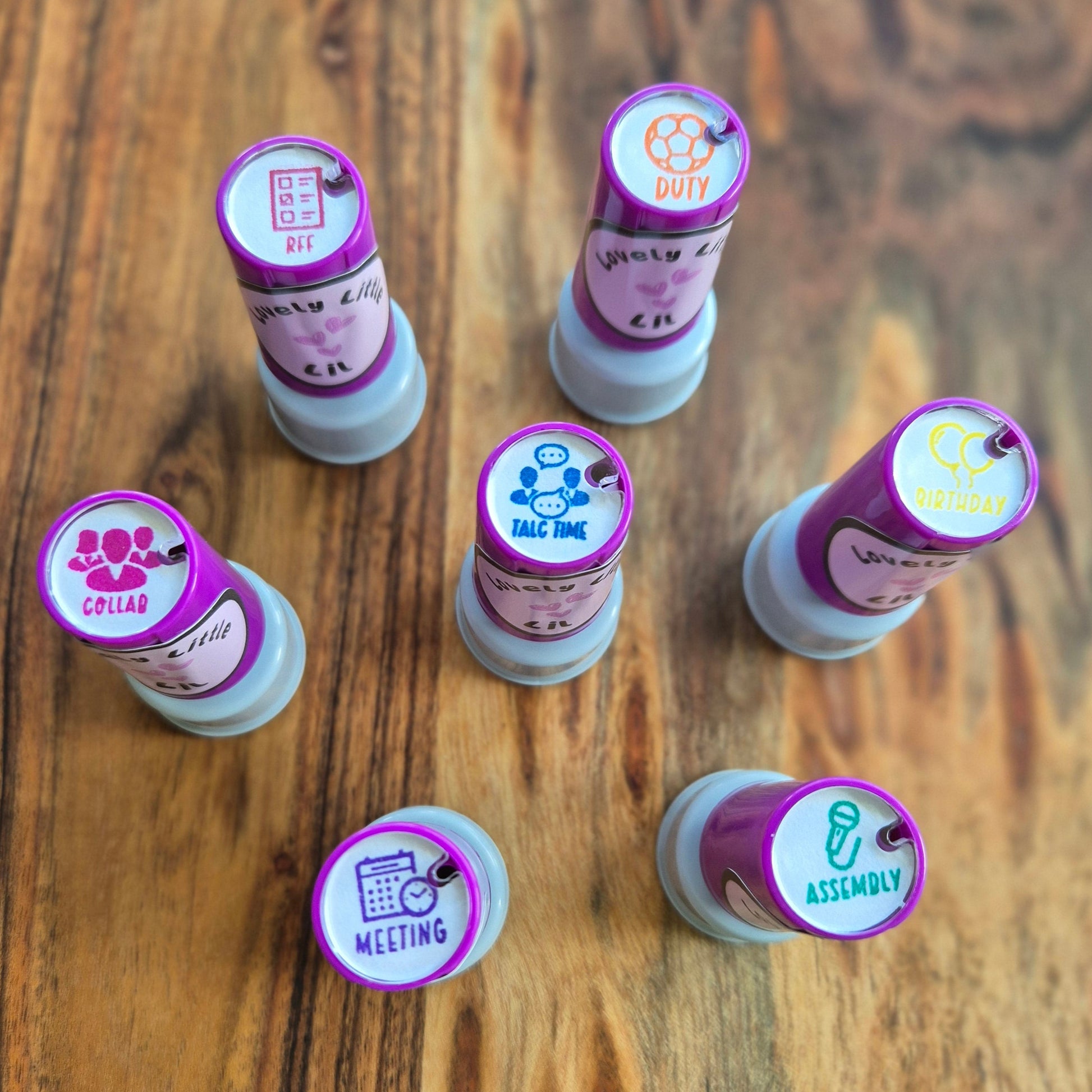 The Teacher Diary Stamps are a selection of stamps for use when completing your term, weekly or daily planning. Adjustments can be made to the wording. If we are missing something you need for your diary, please contact us!